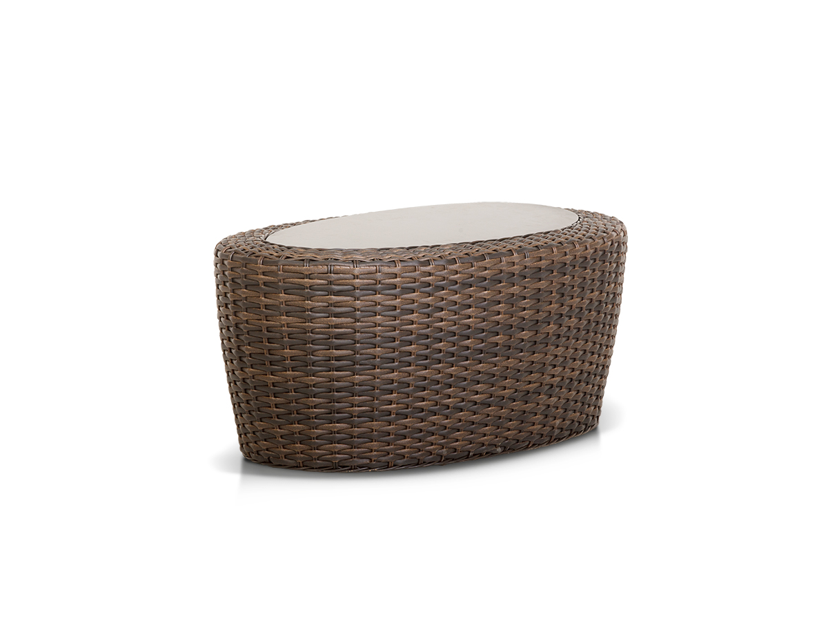 Авела, артикул A008D2 , кофейный столик овальный , алюминиевый каркас, искусственный ротанг, размеры 1070х620х460, цвет темно-коричневый