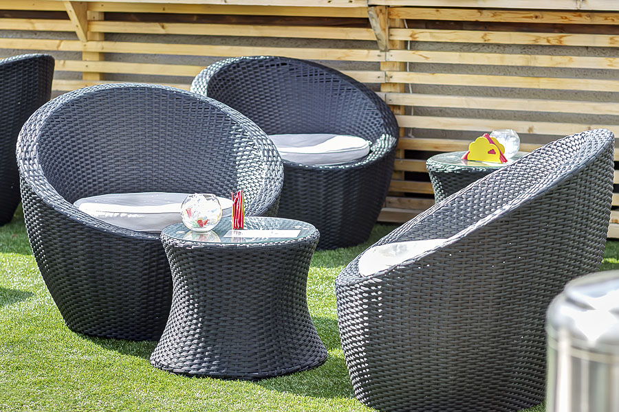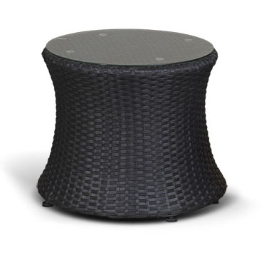 Туллон, столик со стеклянной столешницей толщиной 5мм, алюминиевый каркас, плоский искусственный ротанг, ручное плетение, размер 40х40х51, цвет черный