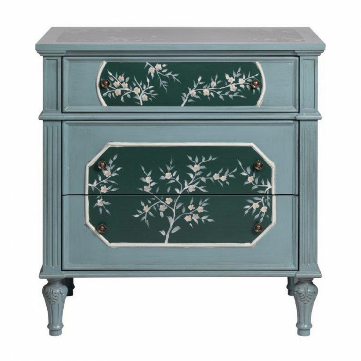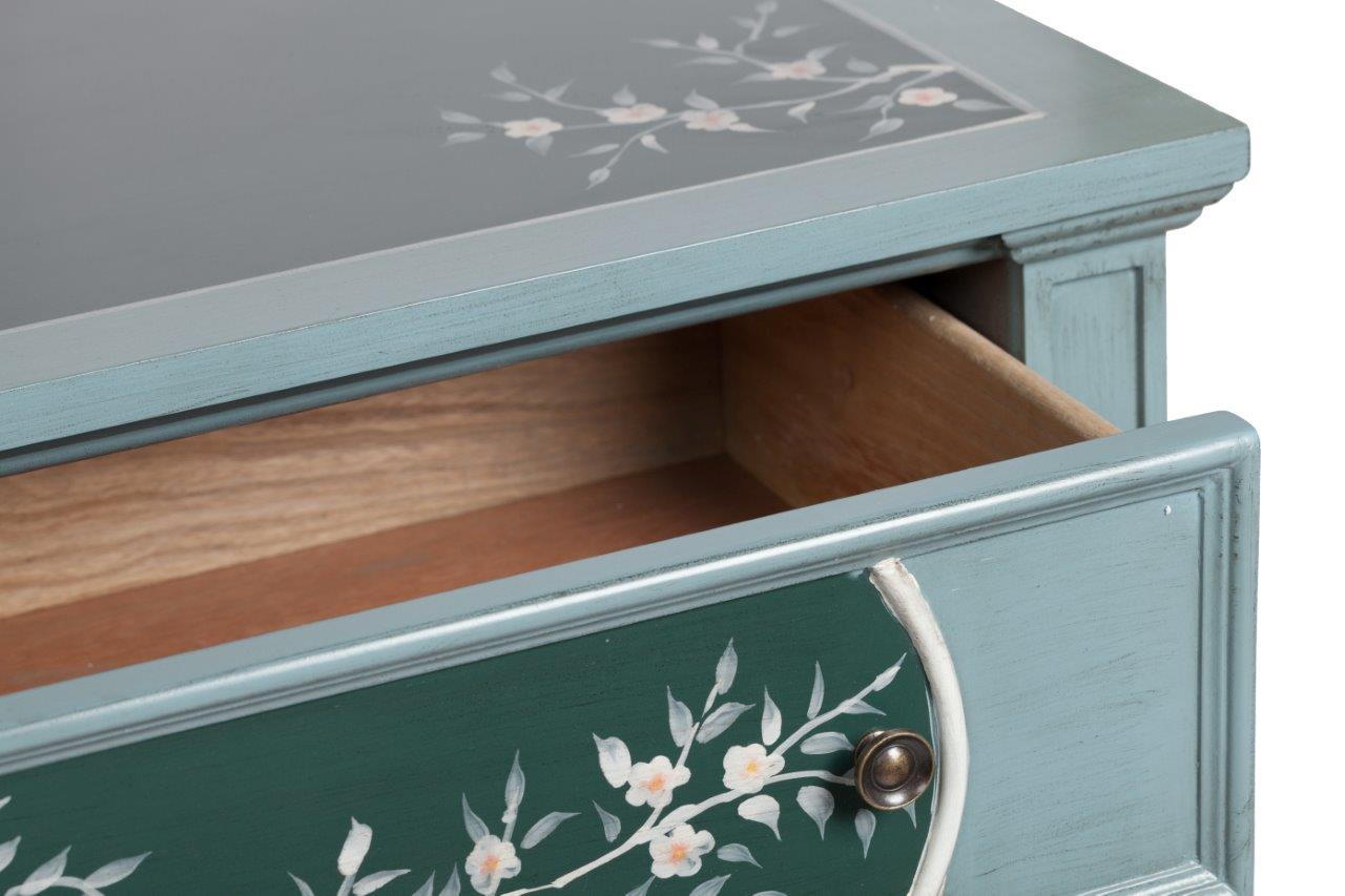 Каркас компактного комода Barri выполнен из березы и окрашен в нежный небесно-голубой цвет. Комод имеет классическую форму и сдержанную лаконичную резьбу по контуру. Ножки комода высокие, декорированные резным растительным орнаментом. Фасады, столешница и боковые стенки комода расписаны в технике акварель. Ящики дополнены аккуратной фурнитурой круглой формы. Комод станет отличным дополнением интерьеров в духе Прованса, романтики, классицизма. Комод Barri голубой