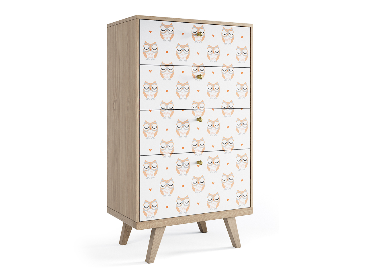Высокий комод Thimon создаст заметный акцент в интерьере спальни или детской комнаты. Ящики комода уверенно выдерживают нагрузку и способны вместить личные вещи, комплекты постельного белья или, например, детские игрушки.Особенности.Более 50 принтов в коллекции и 7 вариантов отделки корпуса, не влияющих на стоимость и срок изготовления. Европейские направляющие с плавным закрыванием.Нагрузка до 20 кг на каждый ящик.Принты устойчивы к солнечным лучам и моющим средствам.Все фасады регулируются для аккуратной стыковки изображения.Корпус защищен матовым лаком.Задние ножки установлены с отступом для плинтуса.Легко установить любые ручки-кнопки.Предусмотрено крепление к стене.Материалы.Основание – массив дуба.Корпус – МДФ, натуральный шпон дуба.Фасады – МДФ.Ящики и полки – ЛДСП, светло-серый.Фурнитура – направляющие с доводчиками, стальные крепежные элементы. Покрытие – тонировка, матовый лак, эмаль, принт. Высокий комод THIMON Осветлённый дуб Принт №058