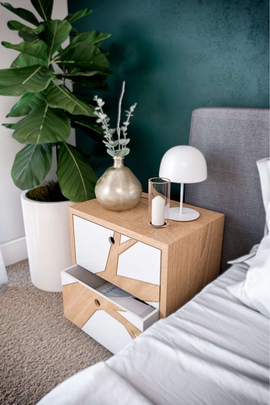 Прикроватная тумба с природными мотивами, имеет два выдвижных ящика