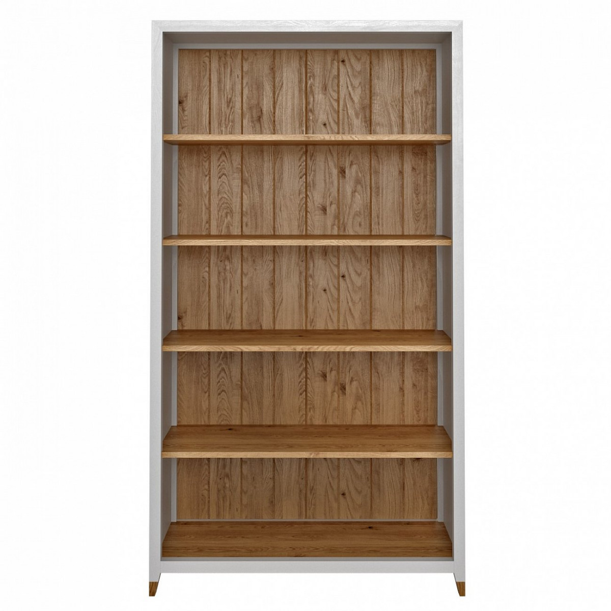 Книжный шкаф из коллекции Arnika. Выполнен из массива дуба. Цвет - белый с выделением тектуры древесины, теплый дуб. Не требует сборки.