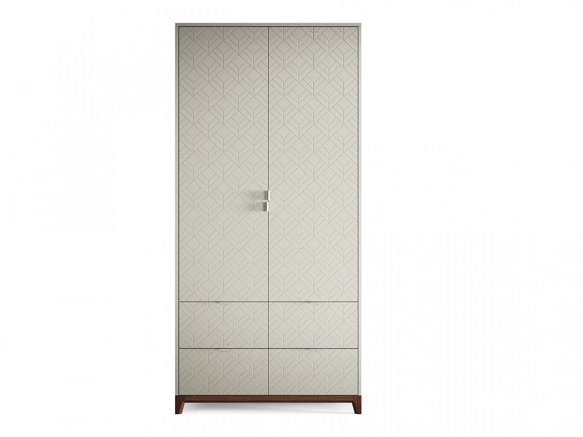 Компактный шкаф Case №4 позволяет комфортно разложить личные вещи на полках и в ящиках, а если потребуется освободить место для длинных вещей на плечиках, то полки легко снимаются или переставляются в соседнюю секцию.Особенности.Более 2500 сочетаний отделок, не влияющих на стоимость и срок изготовления.Все фасады регулируются в трех плоскостях для аккуратного выравнивания узора гравировки.На ящиках установлены направляющие Blum скрытого монтажа с доводчиками.Усиленные каркасы ящиков из ЛДСП выдерживают вес до 30кг каждый.Сплошная перфорация позволяет устанавливать полки в каждой секции в удобном положении.Предусмотрено крепление к стене.Полки и перегородки из прочного и экологичного ЛДСП.Возможен заказ шкафа без гравировки фасадов.Изготавливаем в индивидуальном размере.Материалы.Основание – массив дуба.Корпус – МДФ.Фасады – МДФ.Ящики, полки и перегородки – ЛДСП, светло-серый.Фурнитура – петли с плавным закрыванием, направляющие Blum с доводчиками, стальные крепежные элементы. Ручки – алюминий.Покрытие – тонировка, лак, эмаль.