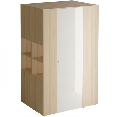 Шкаф-гардероб представляет собой многоцелевой шкаф для хранения одежды, обуви, книг, аксессуаров и других вещей. С торца шкафа есть открытое отделение с полками. В нижней части находится панель для примыкания кровати или стола. Во внутреннем отделении шк...