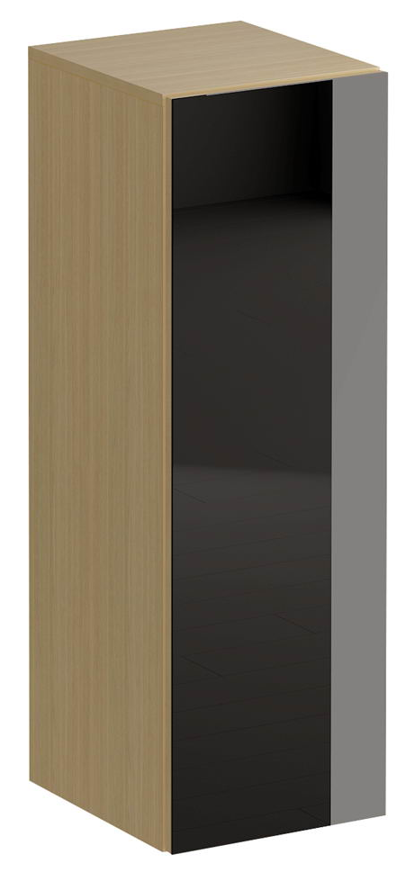 Шкаф имеет три отделения, образованные двумя съемными полками с возможностью переустановки по высоте. Распашная дверь открывается по принципу «нажал-открыл». Задняя стенка белого цвета.