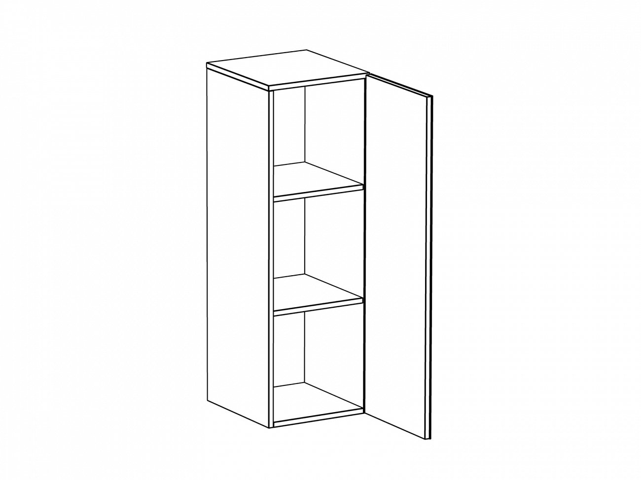 Шкаф имеет три отделения, образованные двумя съемными полками с возможностью переустановки по высоте. Распашная дверь открывается по принципу «нажал-открыл». Задняя стенка черного цвета.