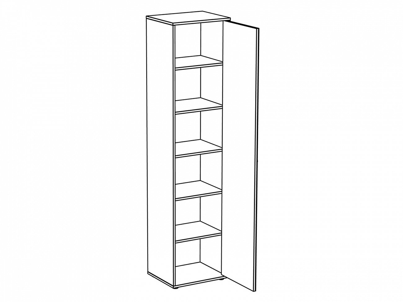 Шкаф однодверный. Наполнение шкафа - 5 полок. Шкаф крепится к стене.