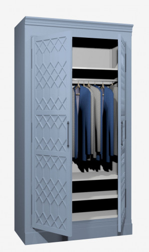 Шкаф с полками отдельностоящий Портленд с состариванием васильковое поле
