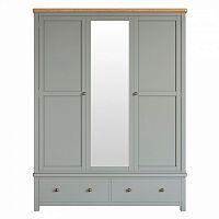 Шкаф четырехдверный состоит их трёх отделений. В отделениях расположены верхние стационарные и нижние съемными полки. Шкаф установлен на регулируемые опоры. Данную мебель рекомендуется крепить к стене.