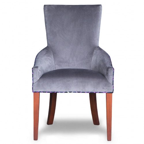 Модель представлена в мягкой, бархатистой ткани микровелюр, которая отлично пропускает воздух, отталкивает пыль и долго сохраняет изначальный цвет, не протираясь и не выцветая. Для этого стула мы также можем подобрать ткань на Ваш вкус из других коллекций. Каркас и ножки стула выполнены из дуба.