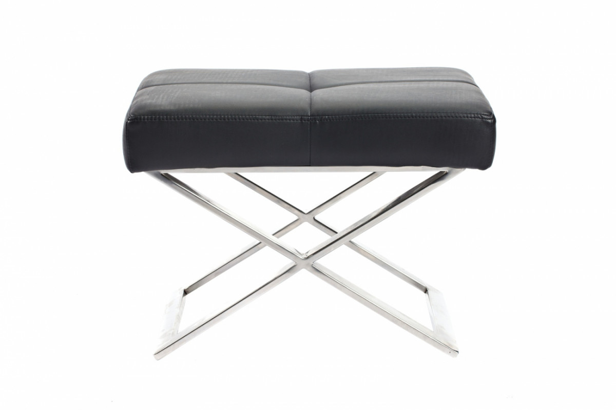 Изысканный табурет Aster X Stool изготовлен в стиле модерн, уникальное мягкое сиденье покрыто чёрной экокожей, на металлическом каркасе, удачно сочетается с ножками, выполненными в виде прямоугольных рам из нержавеющей стали, даря вам изысканный и роскошный аксессуар. Утонченный и в то же время очень удобный табурет Aster X Stool вы сможете приобрести как самостоятельный и оригинальный предмет мебели.
