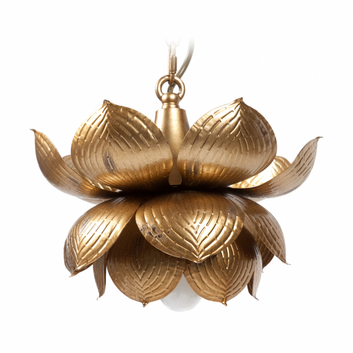 Оригинальный подвесной светильник Like Baryt с металлическим основанием золотистого цвета крепится на тонкой металлической цепи. Абажур также изготовлен из металла в виде золотого цветка и направляет свет вниз. Светильник надежен, удобен, оригинален, создает уют и хорошее настроение. Предназначен для использования со светодиодными лампами.