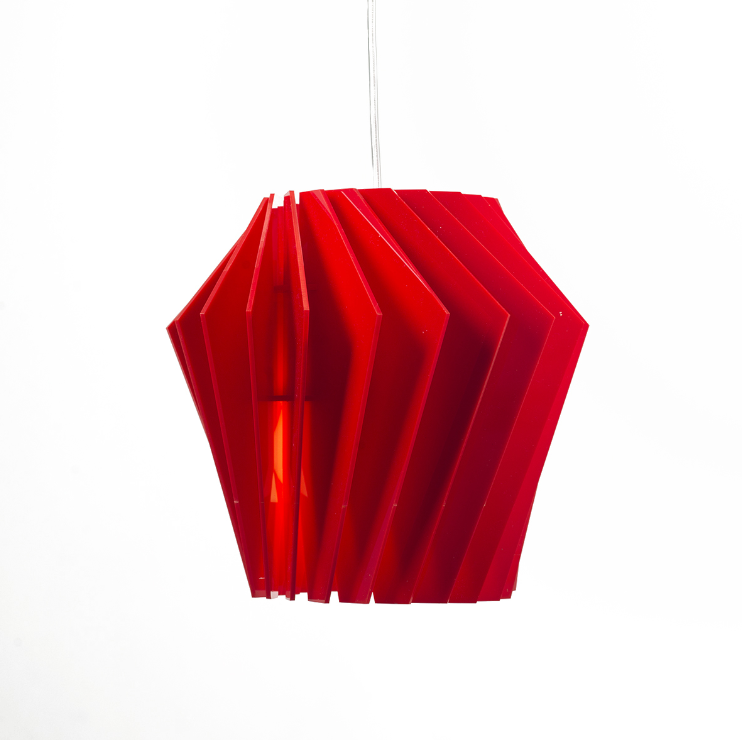 Стильный, дизайнерский светильник глубокого красного цвета украсит любой современный интерьер, добавит необходимые световые акценты, а также создаст неповторимую атмосферу. Пластины изготовлены из акрилового стекла Plexiglas и скреплены между собой специальными пазами и образуют игривую, как будто двигающуюся комбинацию.
